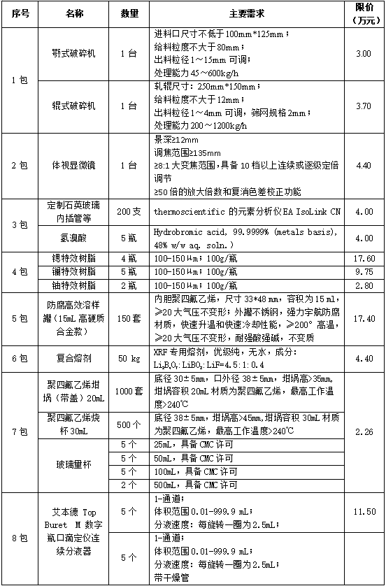 一、项目名称:中国地质调查局武汉地质调查中心颚式破碎机等货物采购