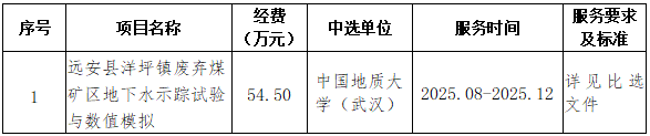 根据《武汉地质调查中心采购管理办法》及相关要求,武汉地质调查中心组织召开了“远安县洋坪镇废弃煤矿区地下水示踪试验与数值模拟”项目竞争性比选承担单位的评审会,现将结果公告如下。