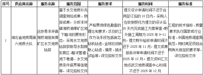 二、项目名称:远安县洋坪镇湘桥湖废弃煤矿区水文地质钻探
