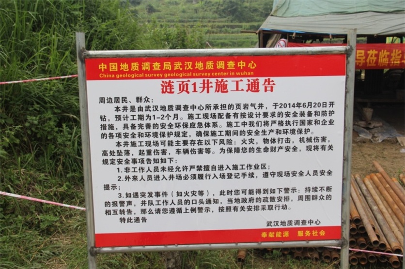 2014年7月1日,武汉地质调查中心地层古生物室副主任王传尚研究员、室安全员李志宏副研究员等一行到湖南省涟源市涟页1井现场开展野外钻井安全专项检查。