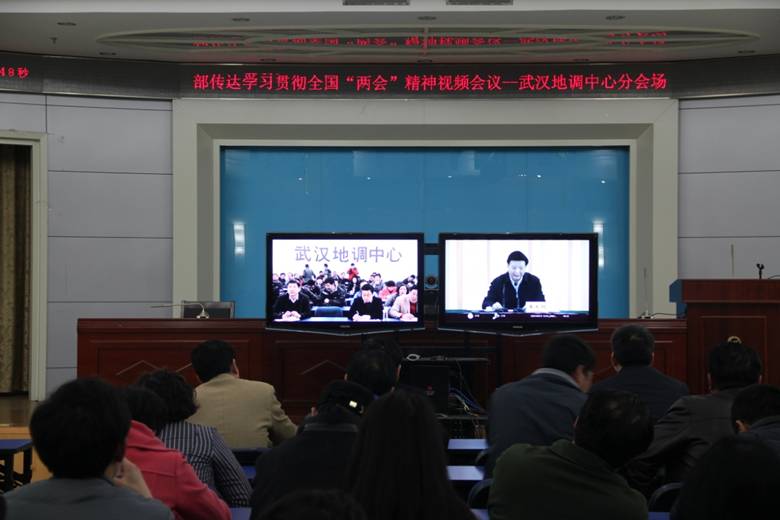 3月17日下午,国土资源部召开传达学习贯彻全国“两会”精神视频会议。国土资源部部长、党组书记、国家土地总督察姜大明主持会议。国土资源部党组成员、副部长胡存智全面扼要地传达了全国“两会”精神。最后,姜大明部长作了重要讲话,要求各单位要深入学习、准确把握两会精神实质,认真履职尽责,加强国土资源队伍自身建设,扎实推进国土资源各项工作。按照中国地质调查局要求,武汉地调中心组织处级及副高以上干部职工70余人参加了会议。