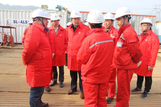 在武汉地调中心组织实施的鄂宜页1井钻探施工现场,胡茂焱详细听取了工程进度、取得的重要成果、安全生产管理、春节期间一线人员工作和生活安排等方面的情况汇报,对工程进度、前期工作给予充分肯定。他强调指出,项目组一定要和施工单位团结一心,按照预定的工期和成果目标,精心组织施工,确保工程质量、安全和环保,力争早日实现页岩气勘探评价更大突破!胡茂焱和一线工作人员亲切交谈,询问大家的工作和生活情况,再三叮嘱项目组和钻探施工单位——江汉石油工程公司,一定要安排好春节期间一线工作人员的生活,利用网络等形式方便一线人员在春节期间能随时与家人联系互动,确保他们身处异乡也能度过一个愉快、温暖的春节。