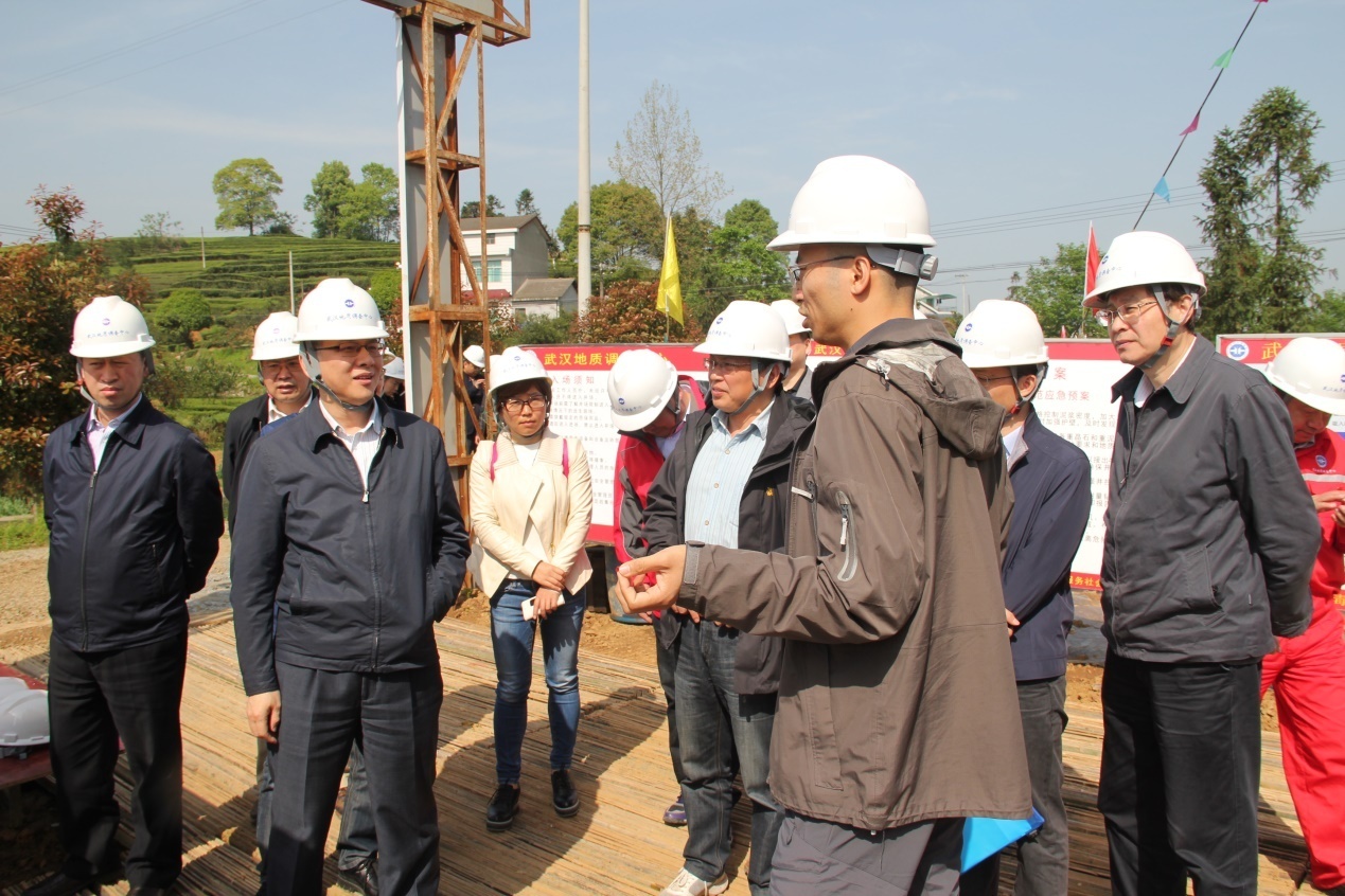 2017年4月13日上午,中国地质调查局党组成员、副局长王昆一行前往湖北省宜都市,对“中扬子地区古生界页岩气基础地质调查”宜都项目组进行了考察调研。考察调研组由中国地质调查局总工室、中国地质调查局资源评价部、国土资源部地勘司行业管理处以及地调局油气中心的领导和专家组成。湖北省国土资源厅副厅长徐振坤、宜昌市人民政府副市长卢军、宜昌市国土资源局局长王华品以及武汉地质调查中心党委书记胡茂焱等领导陪同考察调研。