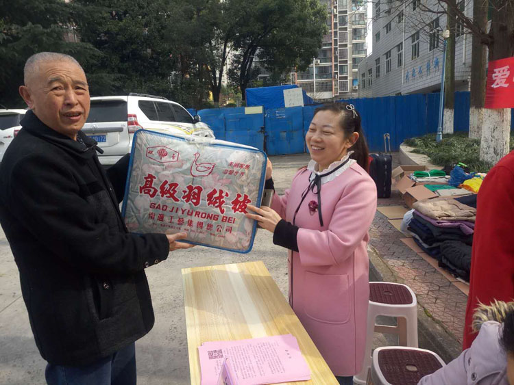 早上九点,离退休老同志们纷纷走出家门来到活动现场,踊跃捐赠,奉献爱心。黄金炯虽然行动不便,但她得知信息后,坐着轮椅让儿子推到活动现场,并要儿子拿着大包小包的衣物来捐赠;陈德柔特意将家中比较新的衣物挑选出来,叠得整整齐齐,装在两个包装袋里送过来。她说“衣服多也穿不了,不如捐给需要的人。”熊佳巩同志体弱多病,下楼都很困难,老伴又经常住院,他们捐了1000元现金,并对工作人员说:“我们身体不便,请帮忙给山区的贫困户买点御寒物品,表达我们的一片心意。”