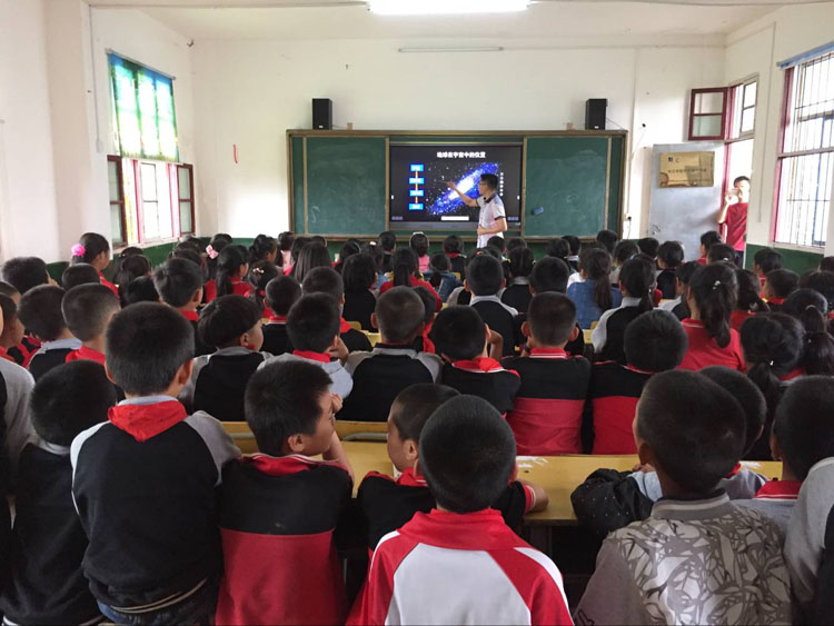 在“地学科普小课堂”环节,项目组科技人员以“地球的‘皮肤’——岩石”为题,形象生动地为同学们呈现了一堂精彩的讲座。他结合一张张精美的图片,用通俗易懂的语言,为同学们讲解了地球在宇宙、太阳系的位置,地球的年龄、形状、内部结构及地壳的主要岩石类型,及其与自然风景名胜的关系、在日常生活中的应用等地球、岩石的基础知识。有趣、生动形象的讲解,让同学们的学习热情高涨,纷纷踊跃提问、回答问题,在快乐中汲取知识的营养。
