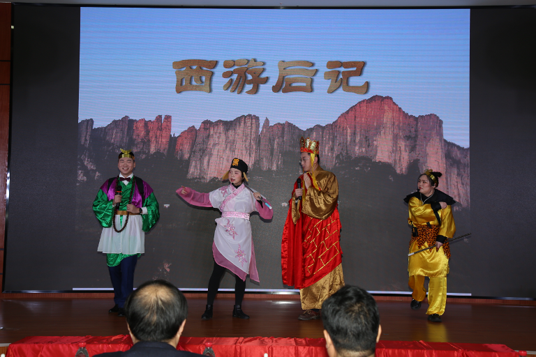 小品《报账西游记》以别具一格的服饰造型、夸张的演绎手法、幽默的文字和肢体语言,通过唐僧师徒四人前往西天取经一路遇到的趣事、烦心事和种种诱惑,形象生动地普及了财务预算和资金管理基本知识,诠释了遵守国家财经法规和单位财务规章制度的重要性,引起观众强烈共鸣,收获多次掌声;合唱《新天新地新时代》唱出了新时代离退休老同志们的铿锵豪情、爱国热情和对幸福生活的美好憧憬,表达了永远跟党走的坚定信念和不变追求,充满了正能量,展现了满满的获得感幸福感;离退休老同志表演的舞蹈《我和我的祖国》,音乐欢快,舞步轻盈,舞出了中国人的自豪和对伟大祖国的爱戴;经典曲目《我爱你中国》堪比专业水准,美妙动听,回味绵长;相声《如此喝酒》说学逗唱有模有样,包袱一个接一个,功夫了得!表演者用幽默诙谐的语言,深情讲述了青年地质工作者在海南岛生态试验区建设中,战胜各种困难和病痛,完成各项富有挑战性的野外地质调查工作,用薄酒一杯以表达同事之间的深情厚谊,感恩当地群众对地质工作的大力支持和对地质工作者的朴实关爱,并巧妙地向观众传达了严格遵守中央八项规定精神的重要性。精彩的演技征服了所有观众,现场欢笑声此起彼伏,现场气氛达到了高潮。