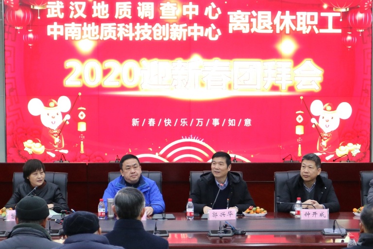 2020年1月17日,适逢农历小年,中国地质调查局武汉地质调查中心宜昌基地九楼会议室欢声笑语、喜气洋洋,一年一度的离退休职工迎新春团拜会在这里举行。中心领导和离退休老同志欢聚一堂、喜迎新春。团拜会由中心纪委书记曾冶红主持,党委书记郭兴华、中心副主任鄢道平、钟开威出席,党委办公室、宜昌基地(离退休)处负责人及130多位离退休老同志参加了团拜会。