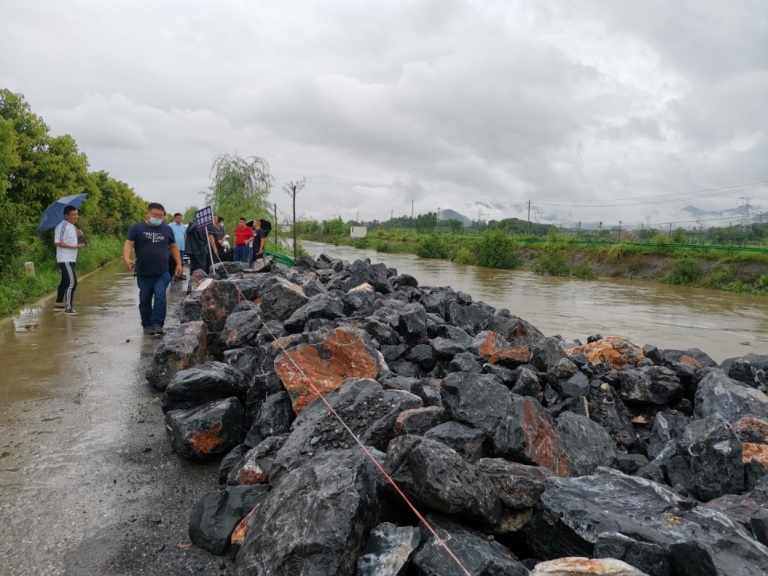 湖北工作组现场查看水南湾岩溶塌陷准备的填料