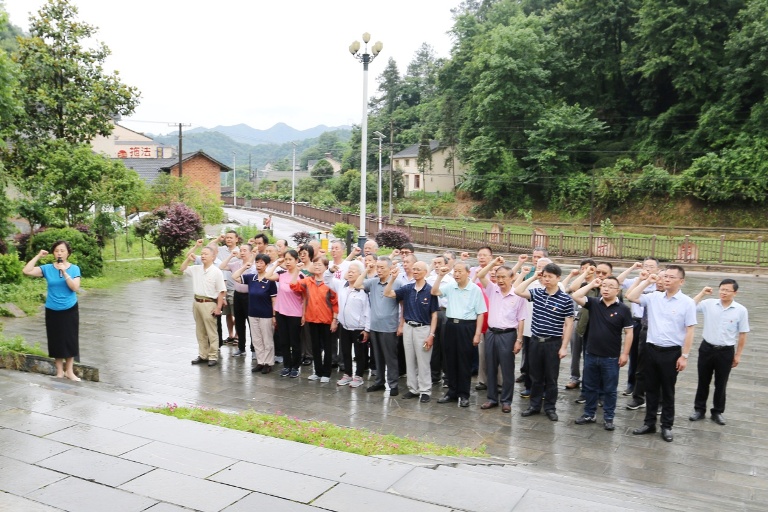 冒着蒙蒙细雨,大家来到纪念馆广场前,瞻仰胡敌烈士铜像,向胡敌烈士铜像敬献花篮,全体党员鞠躬默哀,表达对革命烈士的深切缅怀和无限敬仰。随后大家面向党旗举起右手,重温入党誓词,感悟初心使命,凝聚奋进力量。向党深情表白,要听党话,感党恩,永远跟党走!