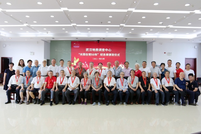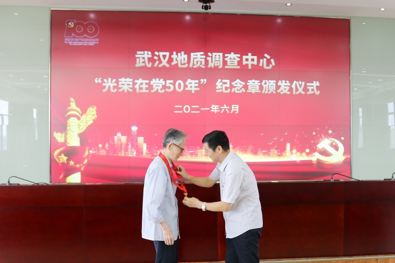 2021年6月23日下午,为庆祝中国共产党成立100周年,大力弘扬老党员的光荣传统和优良品格,中国地质调查局武汉地质调查中心在宜昌基地举行了“光荣在党50年”纪念章颁发仪式。