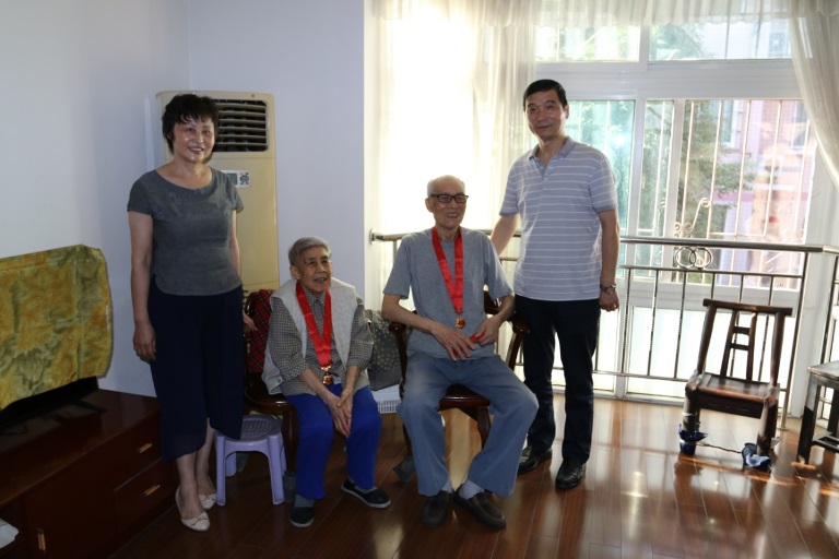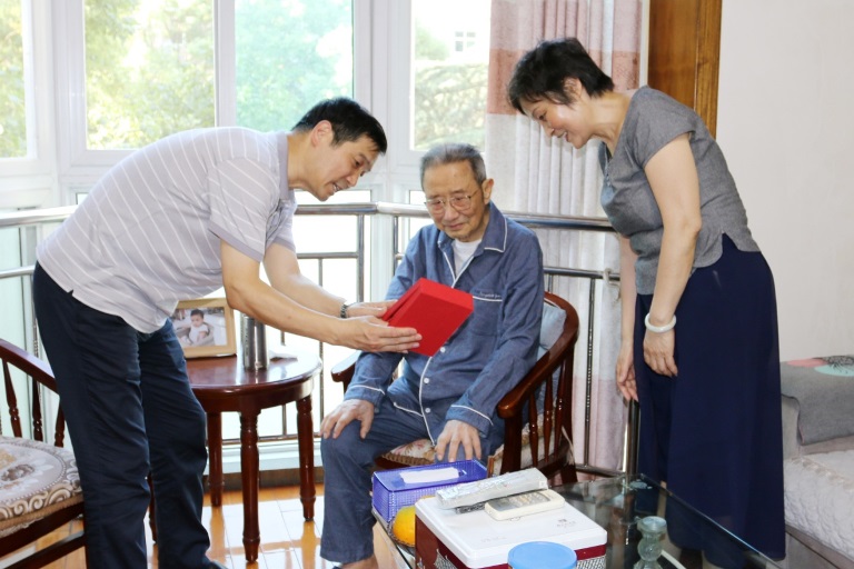 为了让老党员们深切感受到以习近平同志为核心的党中央的关怀和温暖,考虑到部分老党员年龄和身体原因,6月22日下午,党委书记郭兴华、纪委书记曾冶红与党委办公室、宜昌基地党总支工作人员一同通过逐门逐户走访慰问的方式,将这枚意义非凡的纪念章送到行动不便的老党员手中,他们中有建国前入党的老地下党,有参加抗美援朝战争的老战士,虽然他们早已步入古稀、耄耋之年,已是两鬓斑白、步履蹒跚,有的需要常年坐轮椅活动,但岁月的沧桑无法掩盖他们眼神中对党的信仰、对初心使命的那份坚定。走访过程中,中心领导向他们转达党中央的关怀和祝福并带去慰问金,详细询问他们的家庭生活情况、身体状况,感谢他们为党和人民作出的贡献和牺牲,叮嘱随行工作人员要进一步关心关爱离退休老党员,用心用情为他们解决实际困难,让他们充分感受到党的温暖。