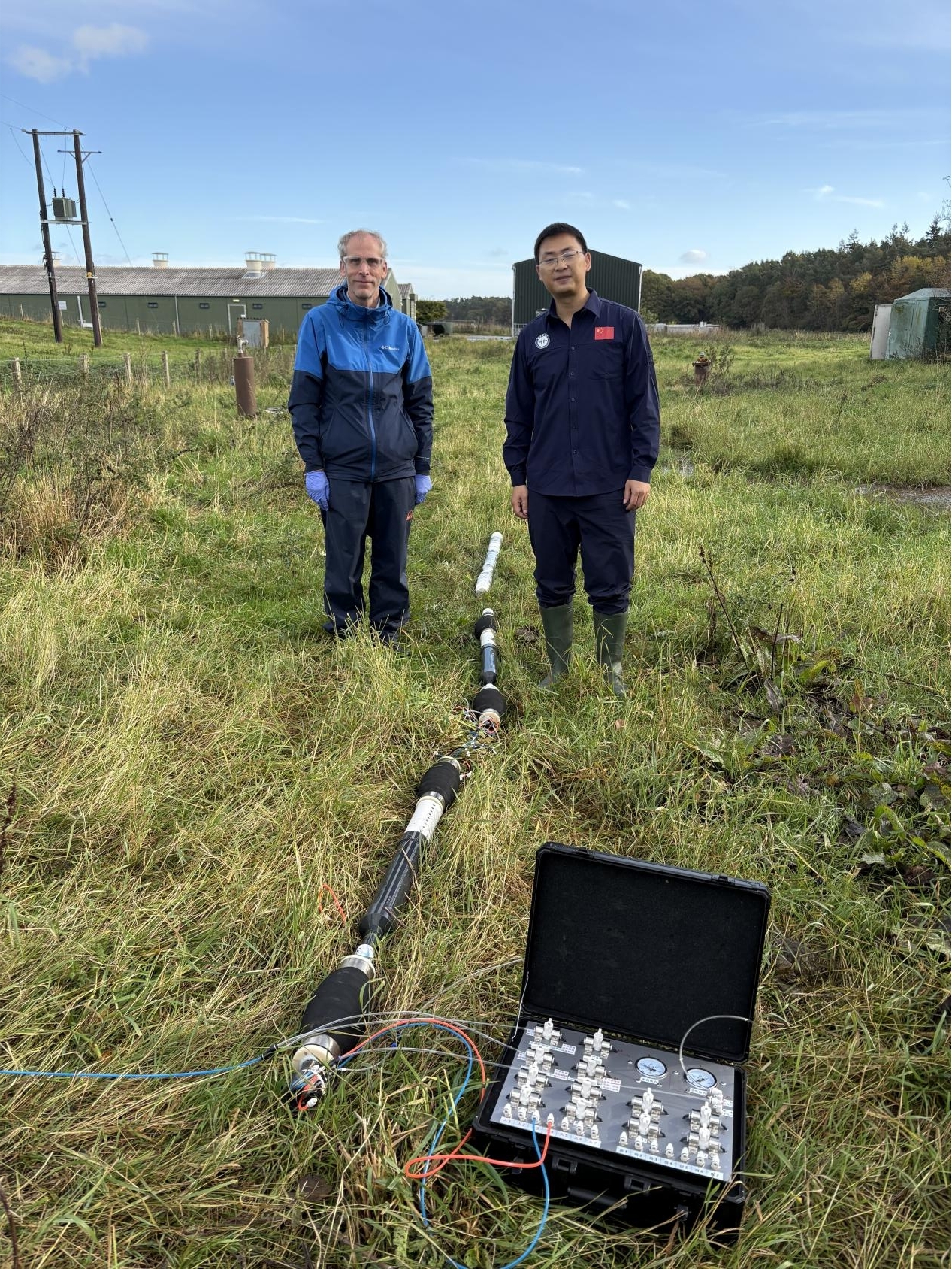 武汉地调中心自主研发的基于钻孔的便携式地下水分层探测与地层信息提取装备在英国纽卡斯尔Cockle Park Farm场地得到成功示范应用。表明分层探测装备通过钻孔井群不同地层深度的地下水采样探测,配合野外水质生物化学快速检测,进而精确刻画地下水流场、化学场、温度场、生物场等沿地层垂直深度呈梯度渐变或界面突变规律的可操作可推广性。