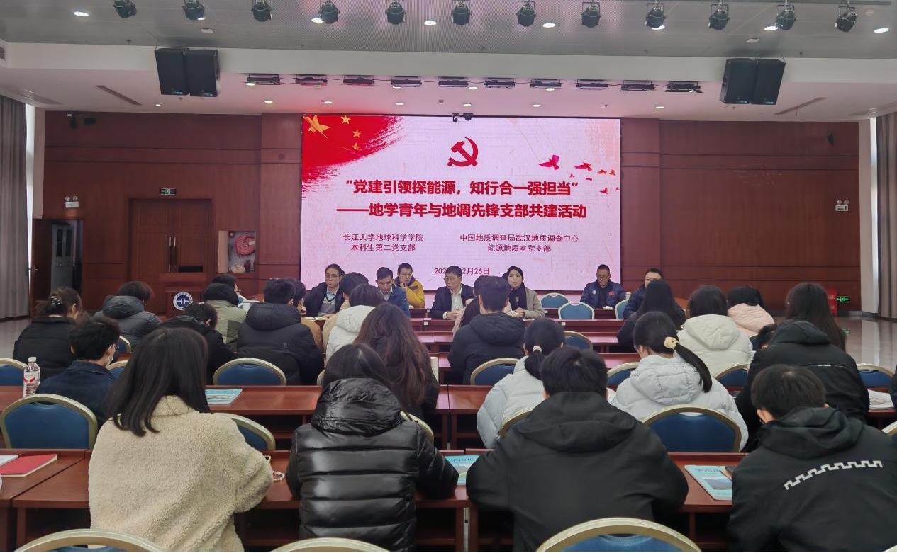 为推动党建工作与业务工作深度融合,2025年12月26日,中国地质调查局武汉地质调查中心能源地质室党支部与长江大学地球科学学院本科生第二党支部联合开展了“党建引领探能源,知行合一强担当”主题支部共建活动。双方党员、师生代表共计50余人参加活动。