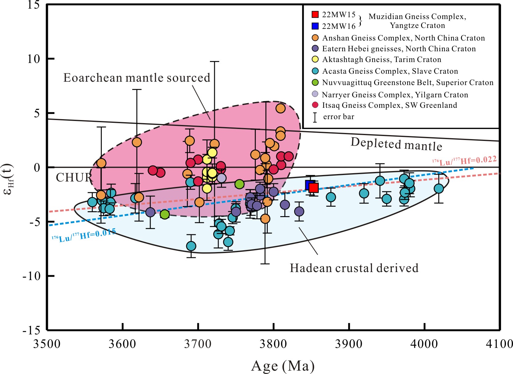 全球主要始太古代地体岩石的Hf同位素组成